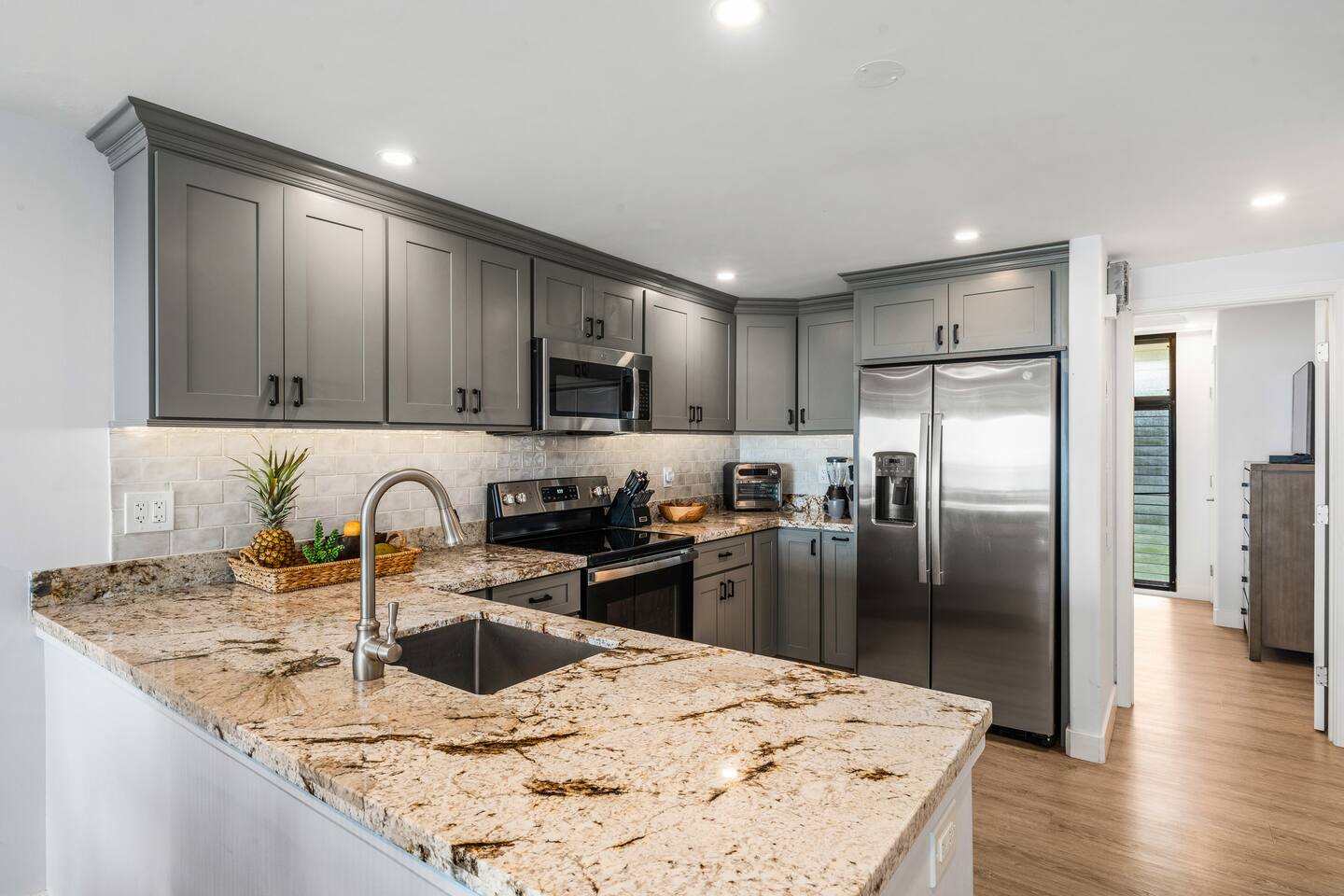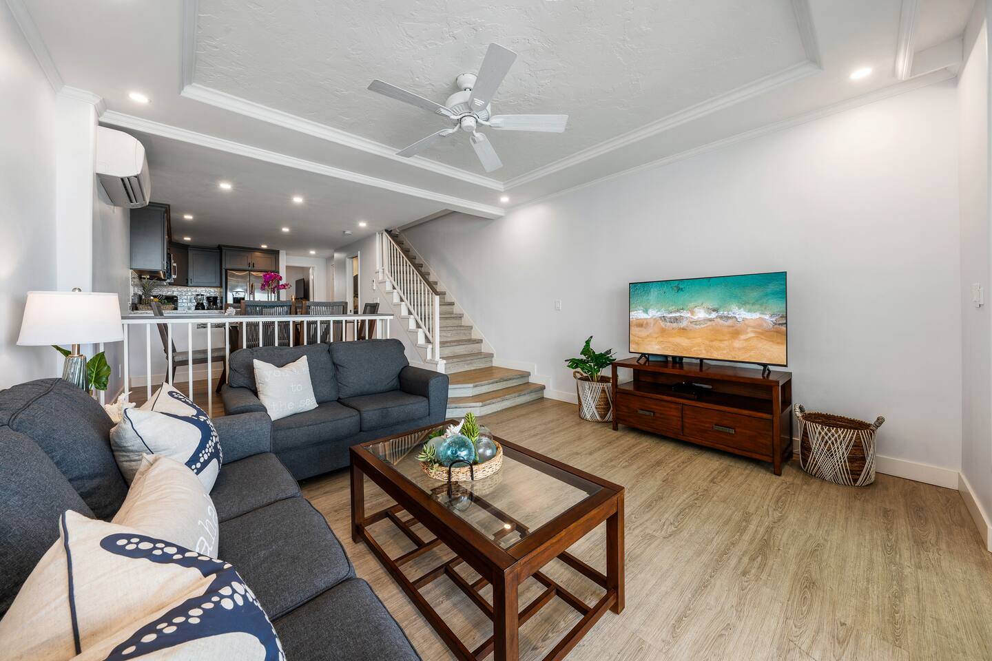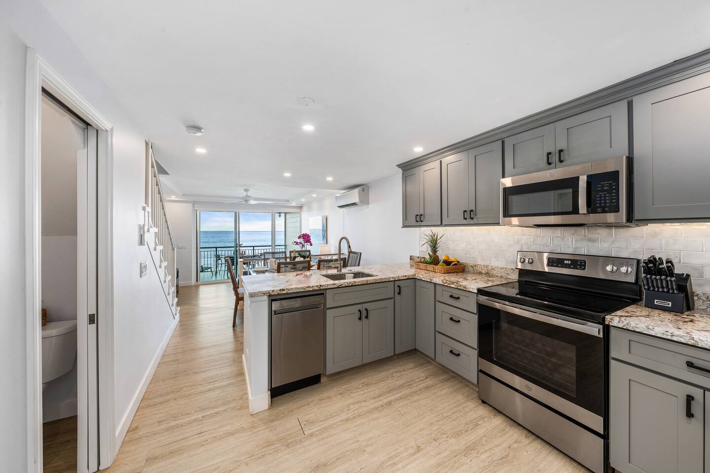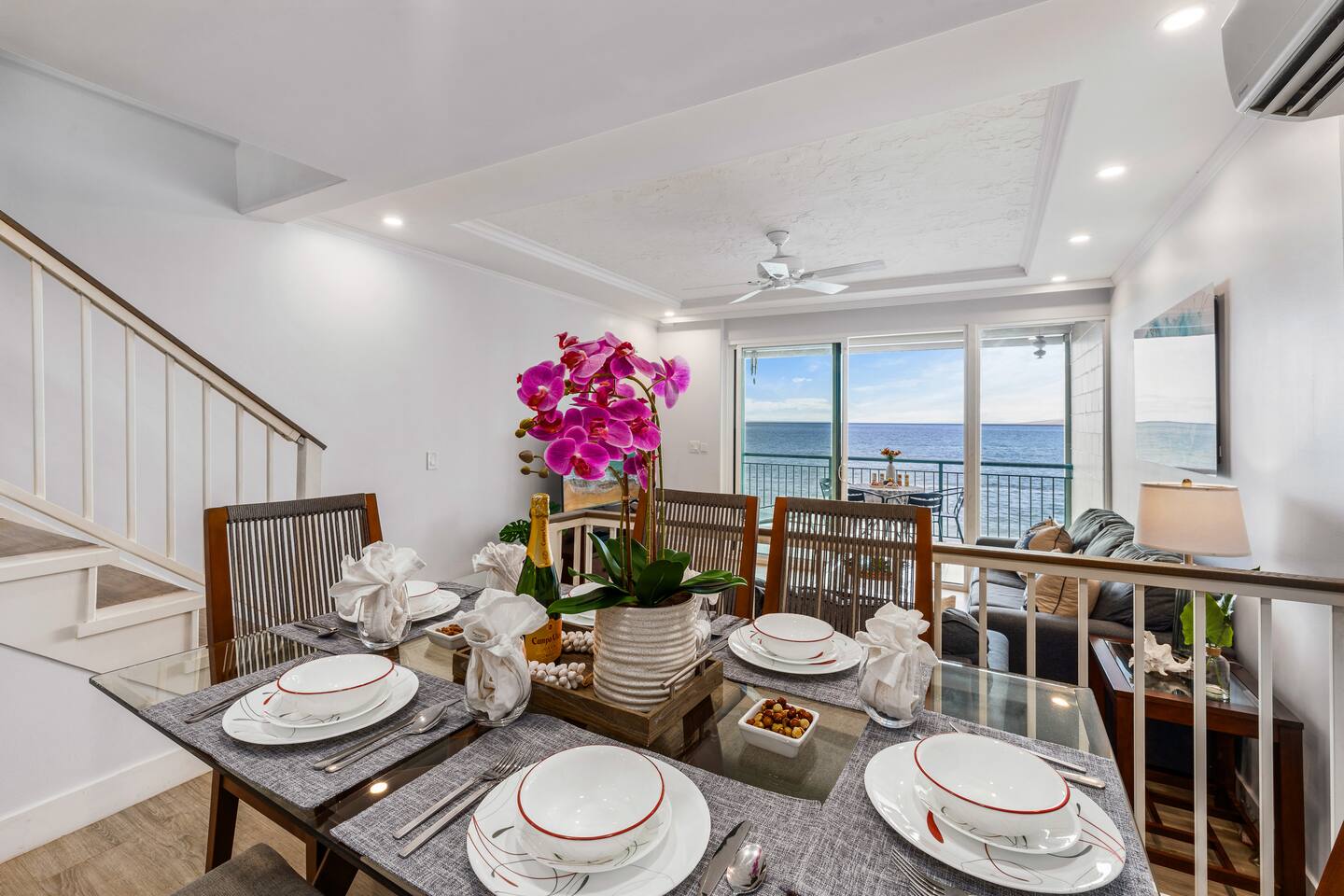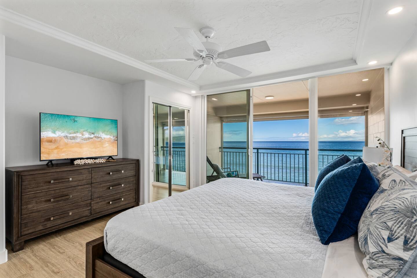 We welcome you to come visit us at Makani Sands 304! This condo has a special place in our heart, and we are pleased to share it with appreciative Guests! It has been designed for both comfort & convenience, featuring a fully-equipped kitchen with *everything* you could need, and a spacious living area that makes it feel like home away from home. We've installed split air conditioning & overhead fans in all rooms, and enjoy the added convenience of in-unit laundry. We’ve also provide baby essentials and beach gear to make your stay as hassle-free as possible! KEY FEATURES: 📍 Unbeatable Location! Oceanfront! Wake up to the sound of the waves and views of Molokai island right from your private lanais. Enjoy direct access to our seasonal beach. 🏡 Spacious Living: This 1,600 square foot home is perfect for families traveling together! The open-concept living area features large windows that fill the space with natural light. A well-appointed kitchen has everything you need to prepare delicious meals, whether you’re dining indoors or al fresco. 🛌 Sleeping spaces: Bedroom 1: California King bed with en-suite bathroom (upstairs) Bedroom 2: Queen bed with en-suite bathroom (upstairs) Bedroom 3: Two Twin beds Living Area: Queen sleeper sofa 🛜 Modern Amenities: Enjoy a contactless check-in with our SmartLock entry. You’ll receive a unique code a few days before your arrival for easy access to your unit. Stay connected with high-speed WiFi available throughout the condo, and indulge in entertainment with Smart TVs in the living area and all bedrooms. For added convenience, you’ll find an in-unit washer and dryer, as well as split AC units in all bedrooms and the main living area to keep you cool and comfortable during your stay. 🍴Fully Equipped Kitchen: Newly updated with modern appliances, this kitchen has all the essentials for daily living and hosting, including grill tools, coffee maker, blender, bakeware, and place settings for 8. 🏖️Beach Ready: You are welcome to use our beach towels, boogie boards, beach chairs, wagon, and a cooler for your seaside adventures. 💟Family-Friendly: We know its not easy traveling with kids, and have made baby essentials available for you, including portable crib, high chair, kids cups/plates/utensils. ✅ Included: Linens, bath towels, beach towels, start-up kitchen items, laundry detergent, and start-up shampoo/soap are provided. 🌴 Resort-Like Amenities: Take advantage of the community heated pool and barbecue area. Stroll through lush tropical gardens or take a short drive to local attractions, world-class Kaanapali beach, dining, golf and shopping. 🌅 Adventure Awaits: From snorkeling and surfing to hiking and exploring charming local towns, Maui has it all. Our condo serves as the perfect home-base for your island adventures! 5-7 min walk to nearest coffee shop, ABC store, gas, restaurants, massage, & souvenir shop. Check-out our other beautiful island properties at Tuvee Homes for your next vacation! KIND WORDS FROM OUR PAST GUESTS ⭐️⭐️⭐️⭐️⭐️ We absolutely enjoyed this updated, well-maintained condo right on the water. There was plenty of space for the two of us and our four teenagers. From watching the sea turtles swim by, to having a spot for the kids to jump in the ocean and do some snorkeling or to relax in the pool was amazing. This resort was clean and everyone was super friendly. Very convenient location, we will definitely be back! Family of 8 (six adults and 2 children) spent 10 nights at this condo in May. Great location. Walking distance to Kaanapali beaches and short drive to Napili and Kapalua. Nicely renovated and good amenities. Access to the ocean in the back and nice pool in the front of the building. Great bbq facilities and sitting areas ocean side. Highly recommended. We absolutely Loved our stay at Makani Sands unit 304. The view was incredible and often brought tears to my eyes. We watched the whales and sea turtles right from the lanai. What a bonus to have 2 lanais, one off the family room and the other off the largest bedroom upstairs. The kitchen had everything we needed and more. There was plenty of space for our family of 5 and we never felt on top of each other. They would light tiki torches each night along the oceanfront which we enjoyed and gave an awesome atmosphere after sunset. We plan to be back and would definitely book here again !
