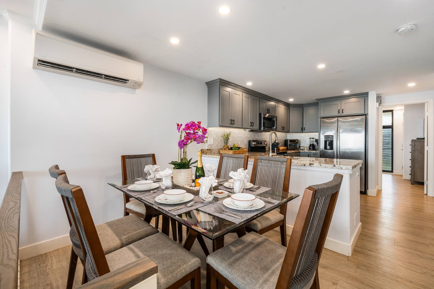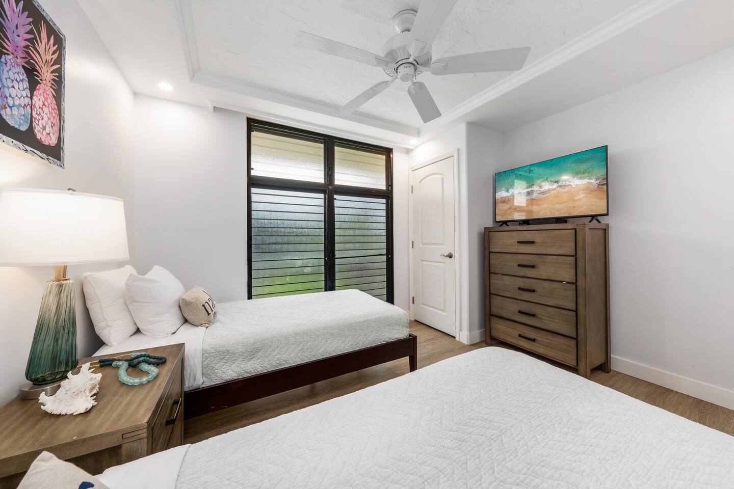 House Rules & Guest Agreement We welcome you to our beautiful home at Makani Sands 304! The terms of our Rental Agreement are provided below and are intended to help you enjoy a safe & reliable stay. By booking this home, you are agreeing to these terms: • In order to book this property, you must be over 25 years old. • Staff at the Building is not associated with the Host. For Guest questions or concerns relating to the accommodations, including maintenance issues, please contact Host directly through the booking channel. In the rare event of an emergency, our on-island contact information is provided in the unit. • Quiet hours are strictly enforced from 10:00pm - 8:00am. Please help us maintain a peaceful environment for all by keeping music and/or excessive noise outdoors to a respectful minimum at all times. Parties / events, lack of decorum and disruptive noise are prohibited; If neighbors are disturbed, we reserve the right to ask the tenant to vacate the premises without refund. • No Smoking Policy - All properties are non-smoking or vaping. Violation will result in a damage liability of up to $2,500 for any discovered damage to furniture or any odors. • No pets allowed. If any sign of any pet is discovered, the Guest authorizes an additional charge of minimum $500 cleaning fee. • Occupancy Limits - The HOA permitted unit occupancy is a maximum of 8 persons. Children over the age of 2 years are included in total occupancy. Should occupancy exceed the number of persons listed on reservation, Host reserves the right to deny access or to require all guests to vacate the premises without refund. • Community Pool – Pool is heated year round. Note it may be chemically serviced and cleaned regularly during your stay. • Splint A/C units - To help us maintain an efficient and sustainable living space, we appreciate your cooperation in turning off the A/C when you leave the unit. Please note that our A/C units may shut off if the lanai doors are left open. Thank you for your understanding and for helping us create a more sustainable environment. • Maintenance - We appreciate when Guests report any maintenance issues immediately, and will make every effort to repair any maintenance issue in a timely manner, seeking solutions that prioritize guest safety and comfort. • Insects - Bugs are a well known part of Hawaii life. While we do perform routine maintenance for pest control, you may occasionally see more insects depending on the season. Keeping the screen door closed and keeping food well-sealed will minimize insects entering the home. • Cancellations - Guest cancellation policy of the booking platform will apply. Should the property become unavailable due to circumstances beyond its control, Host reserves the right to change the reservation accommodation or refund the full balance. • Taxes - If not collected at the time of booking, Hawaii state and local taxes at current local rate may be requested prior to check-in. • Security Deposit / Incidentals - A deposit for incidentals may be required to hold a reservation. Guests will be held liable for replacement and/or repair of items that are damaged and beyond normal wear and tear. Guests may be charged at the Host’s discretion for any costs or damages caused to the property including, but not limited to: furnishings, landscaping, misuse of appliances, extra cleaning fees, unauthorized pets or incidentals based on fee-schedule. No charges will be processed without prior written notice. • Check in/out - Occupancy outside standard check in/out times may be granted on pre approval basis only. Failure to abide by the check-in and check-out times will result in a fine (see Fee schedule) • Lost & Found - Our team will do our best to locate your lost items after check-out. We are not liable for any lost items. Please note that all shipping is at the traveler's expense. There is a minimum $25 shipping cost. By booking this home, ALL GUESTS hereby acknowledge and agree to follow all house rules, neighborhood rules and city laws and ordinances. FEE SCHEDULE: • Unauthorized Late Check Out: $100/hr after the standard checkout time • Smoking in Accommodations: $2500 • Extraordinary Cleaning: $100/hr for cleaning requiring more than 2 hours • Unauthorized Pets: $500 GE-045-854-8736-01 TA-045-854-8736-01